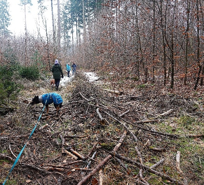 Am Samstag, den 31.01. führte die 4. Wanderung 13 Wanderer und 15 Hunde rund um Lindach herum.